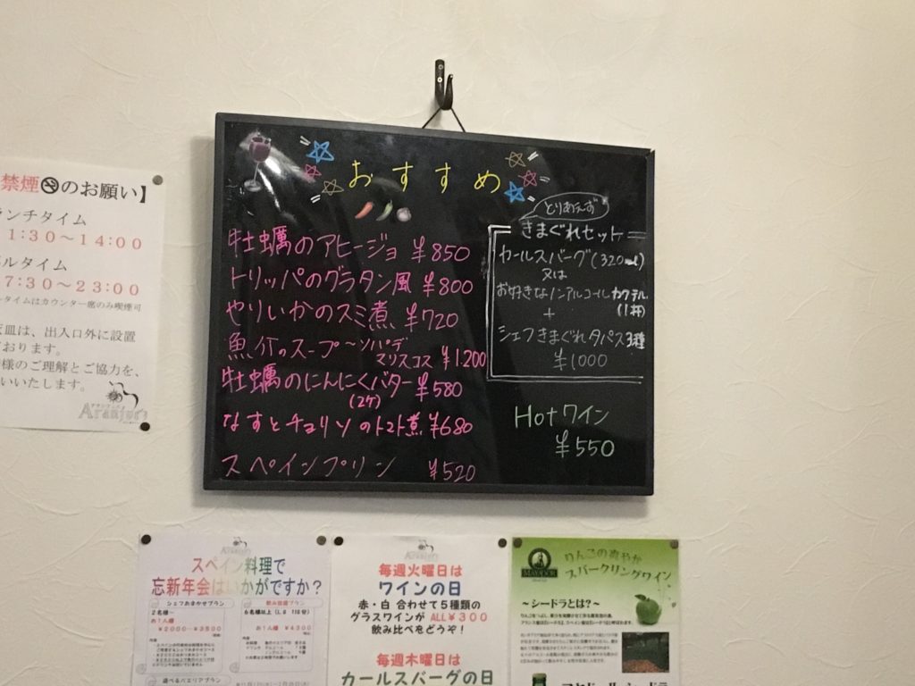 お店入り口にメニューが貼り出されており、いろいろ見ていると木曜日はビールが安い日!こいつはありがたい。(320mlは500円→300円。大きいサイズは750円→500円)