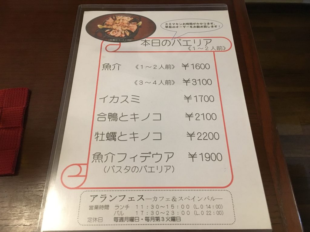 「上田市 スペイン料理」で検索したところ、「アランフェス」がヒットしたのです。
