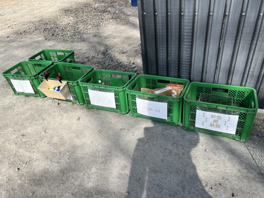 燃えるゴミ・燃えないゴミ以外にも空き缶・瓶・鉄類などあらゆるゴミ箱が準備されていました。