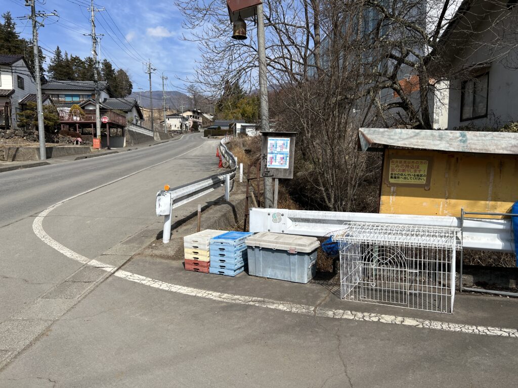 「軽石」というバス停と写真のゴミ捨て場が右折の目印となるので、ここさえ間違えなければ問題なく到着できます。