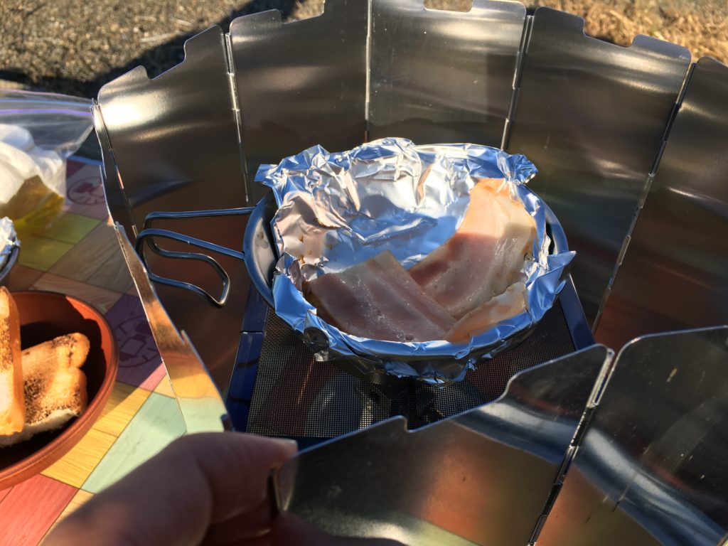 ただし、風が強かったので心強い味方「風防」も併用して調理を行いました。