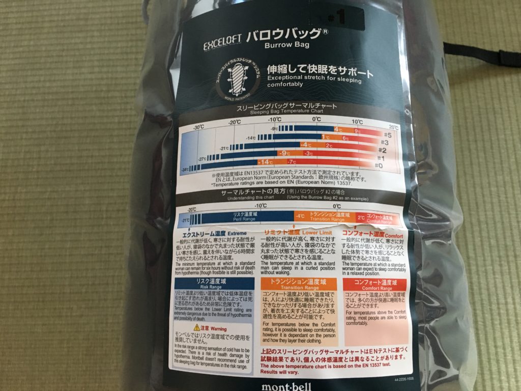 今回購入した#1は、-3度までは快適に快適に眠ることができ、-9度までは服装を厚くすれば快適に休めるといったモデルになります。