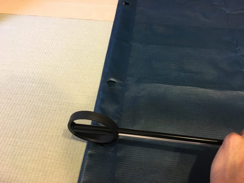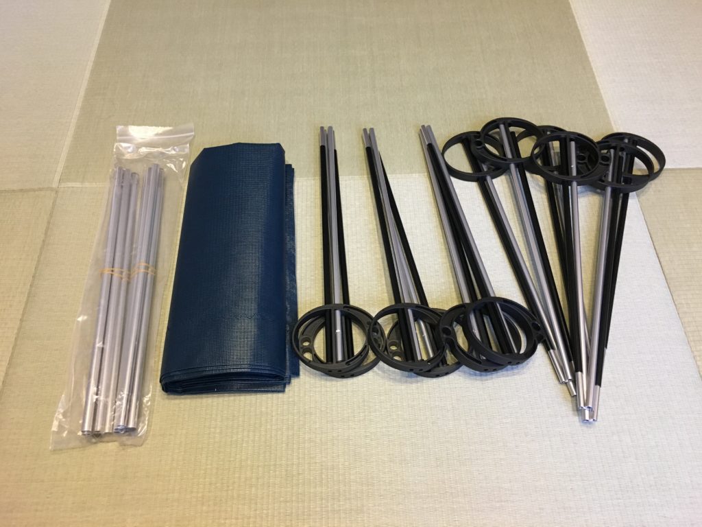 サイドポールと脚はテントのポールのようにゴムでつながっているので組み立てが容易。