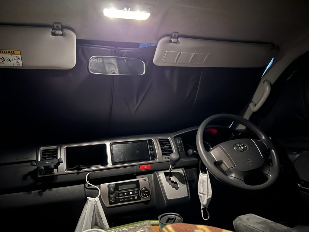 想定された使い方なのかは謎ですが、持ち合わせている道具を駆使して快適性を追求するのも車中泊の醍醐味ですよね!