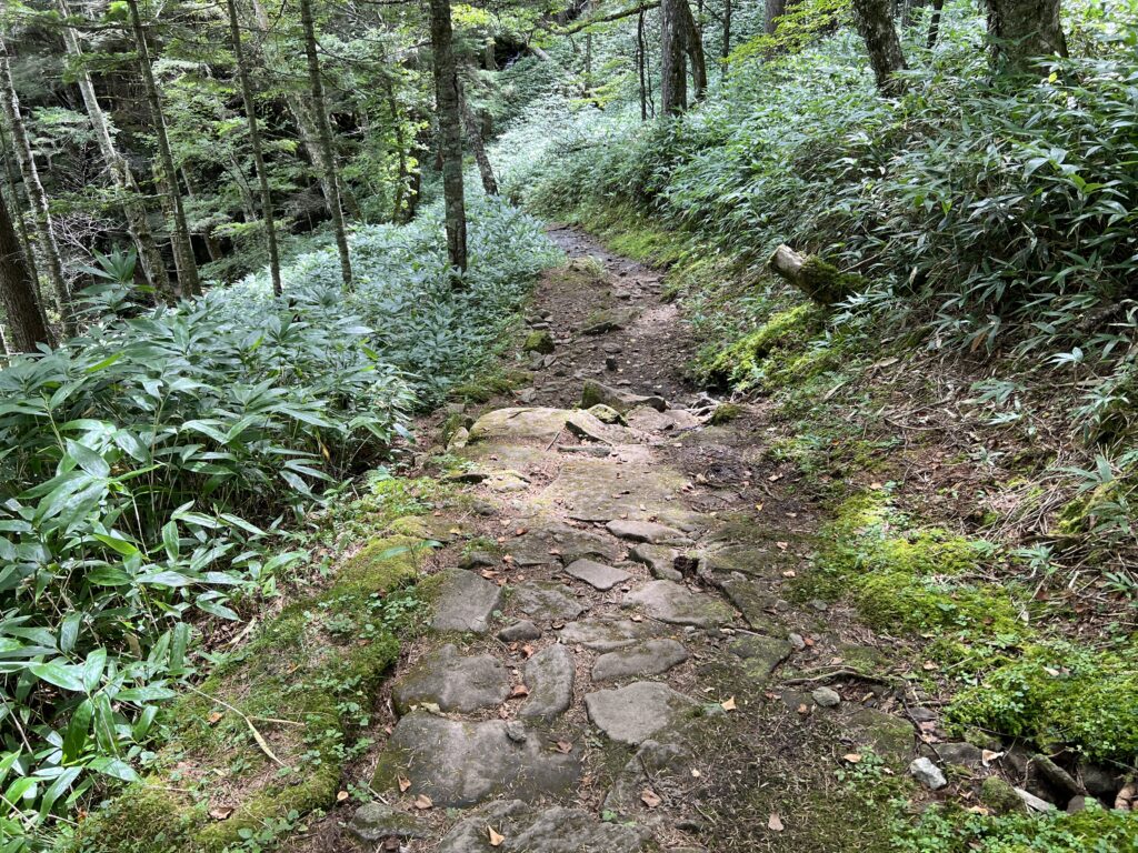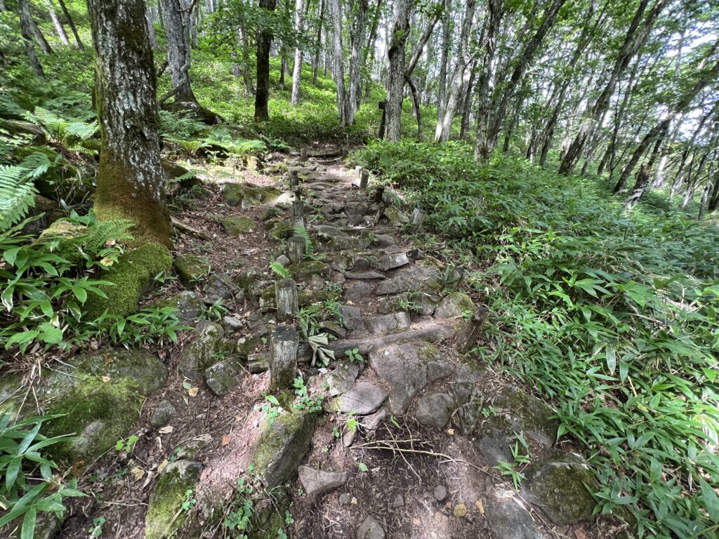 自然の中に作られた階段なので仕方ないですが、一段ずつ高さが違うのでしんどい(笑)