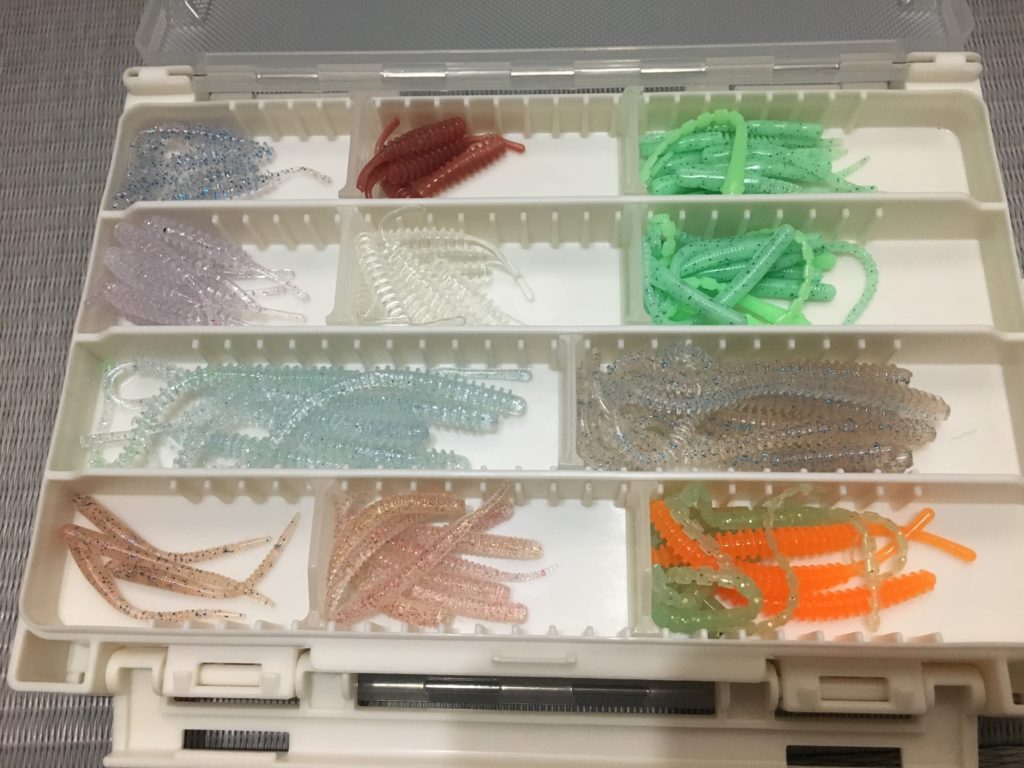 ただ、ジグヘッドと同じで様々な物を買いすぎると色や大きさ・形などがかぶってしまいローテーションしずらくなってしまいます。同じワームを使い続けるとスレてしまうので、時折ワームを変えることも大事です。