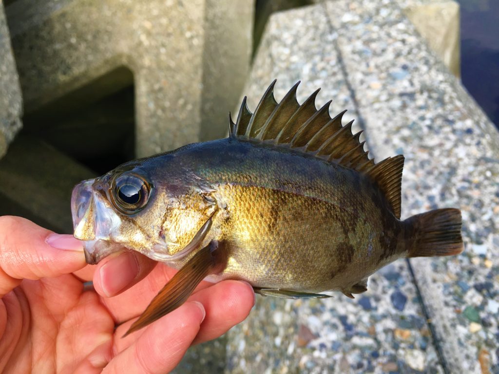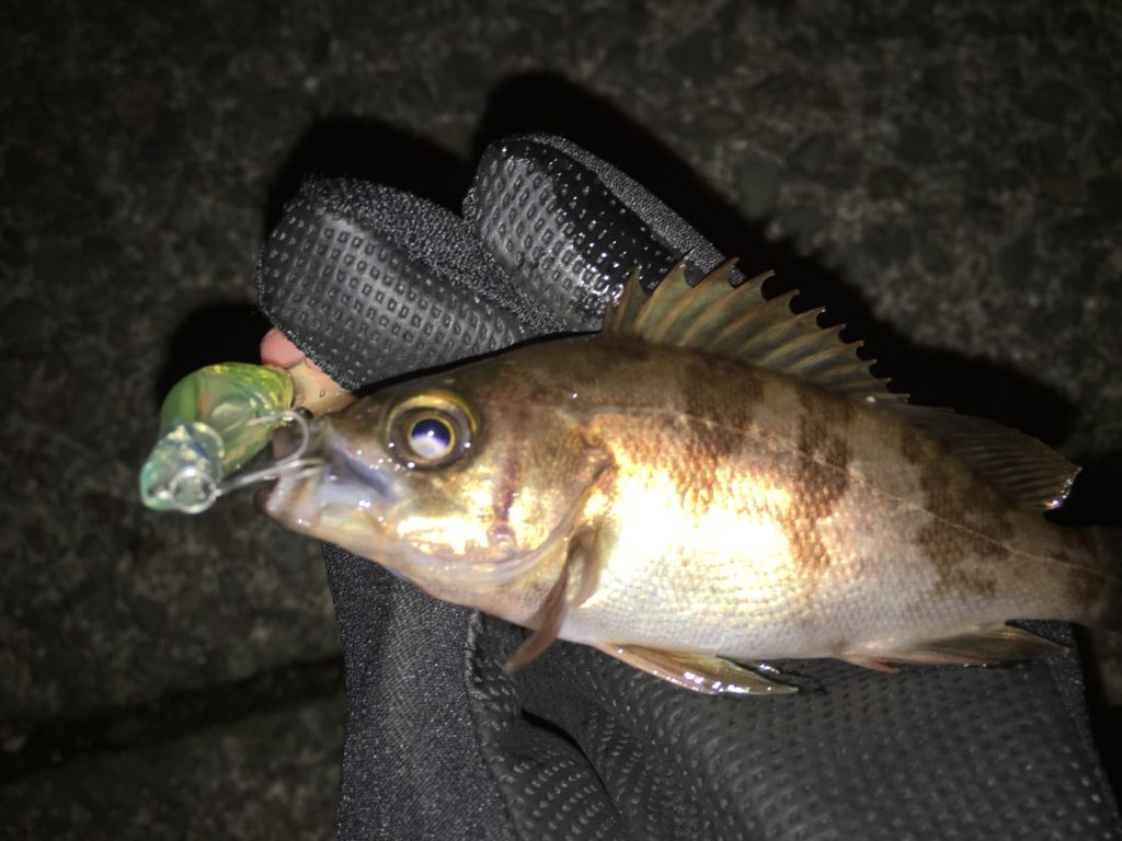 今回の釣行初の赤メバル。一番小さかったです(笑)
