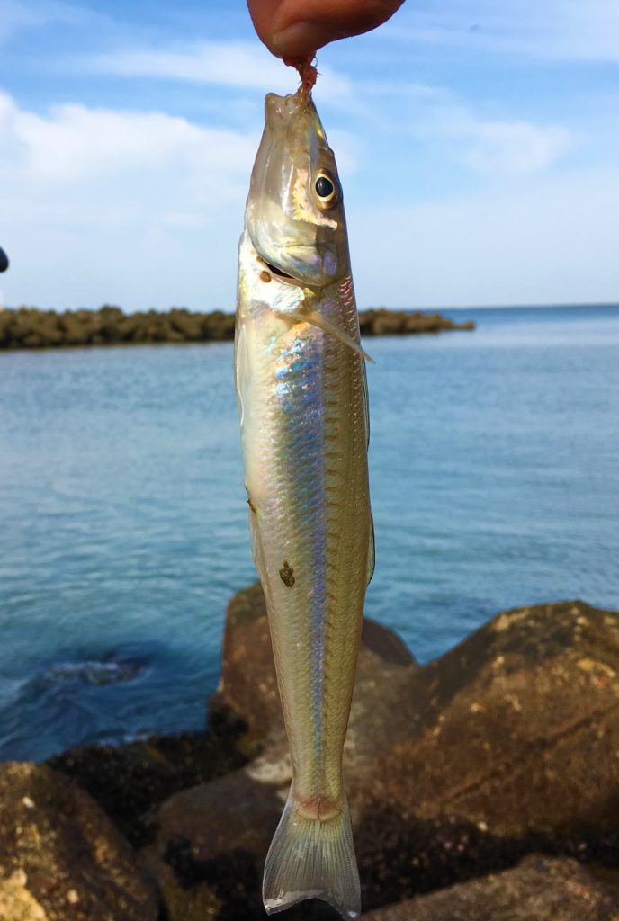 後になって分かったことですが、カタクチイワシがベイトのようでアジリンガーproのサイズ・色がベストマッチだったようです。