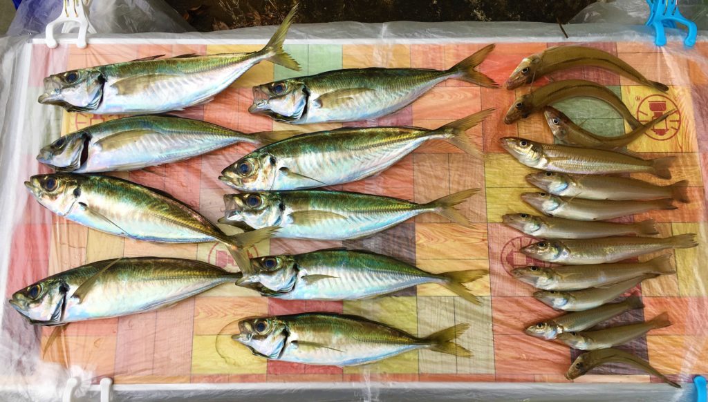 サイズはバラバラでピンギスから20センチ程度まで釣れますよ。