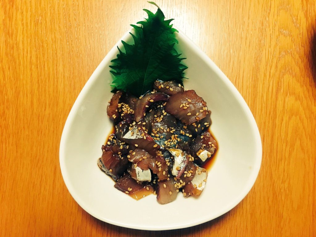 醤油2:みりん1、しょうがとゴマを好みの量入れてタレを作り、アジの刺身を入れるだけ。付けすぎると塩辛くなるかもしれませんので、食べる直前に合える程度でいいかと思います。ゴマ多めが美味しいですよ!