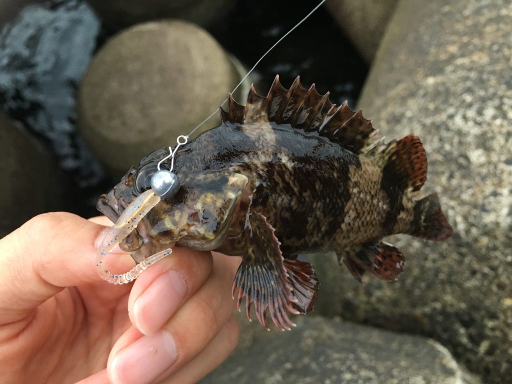 穴釣りで根魚に遊んでもらうの図。