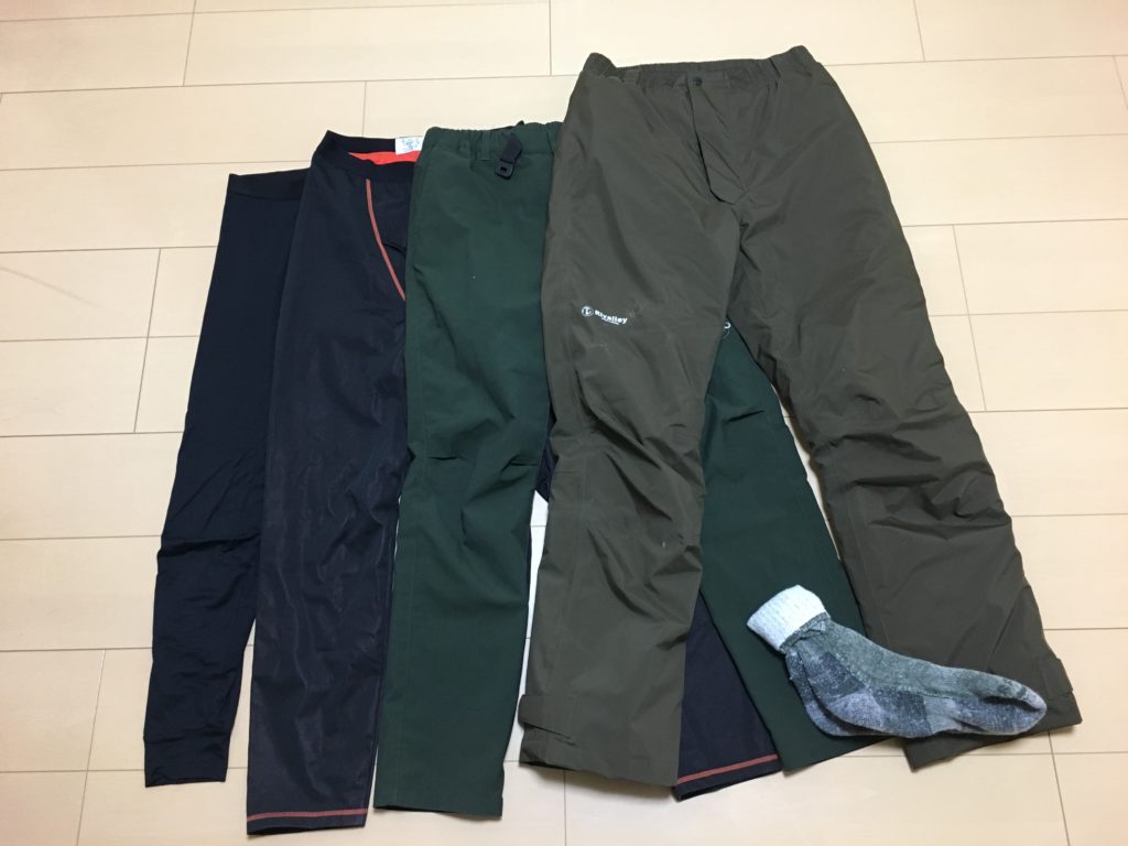 下はヒートテック、購入したタイツ、ズボン、アウター。