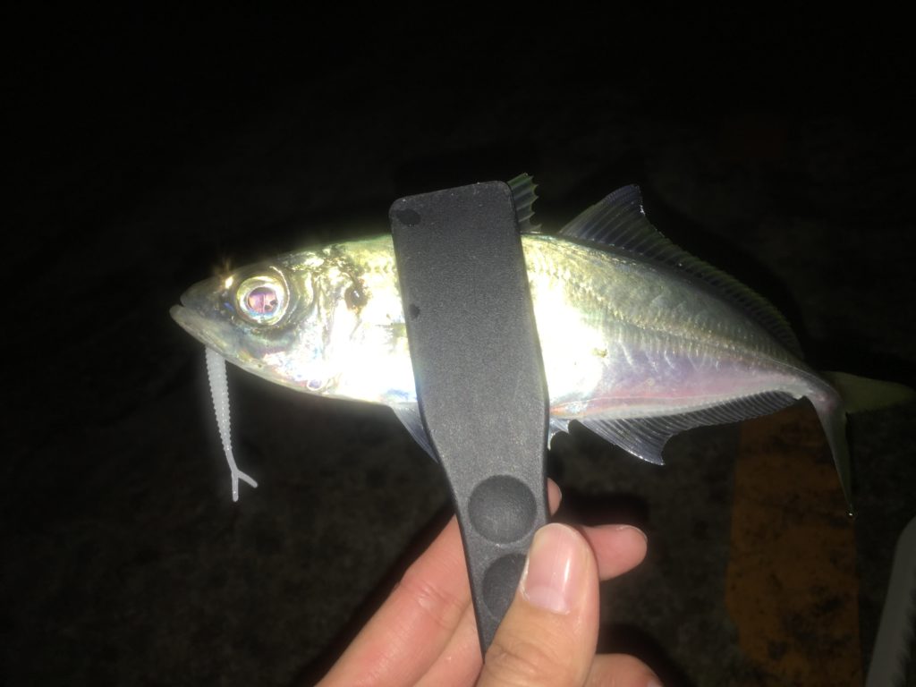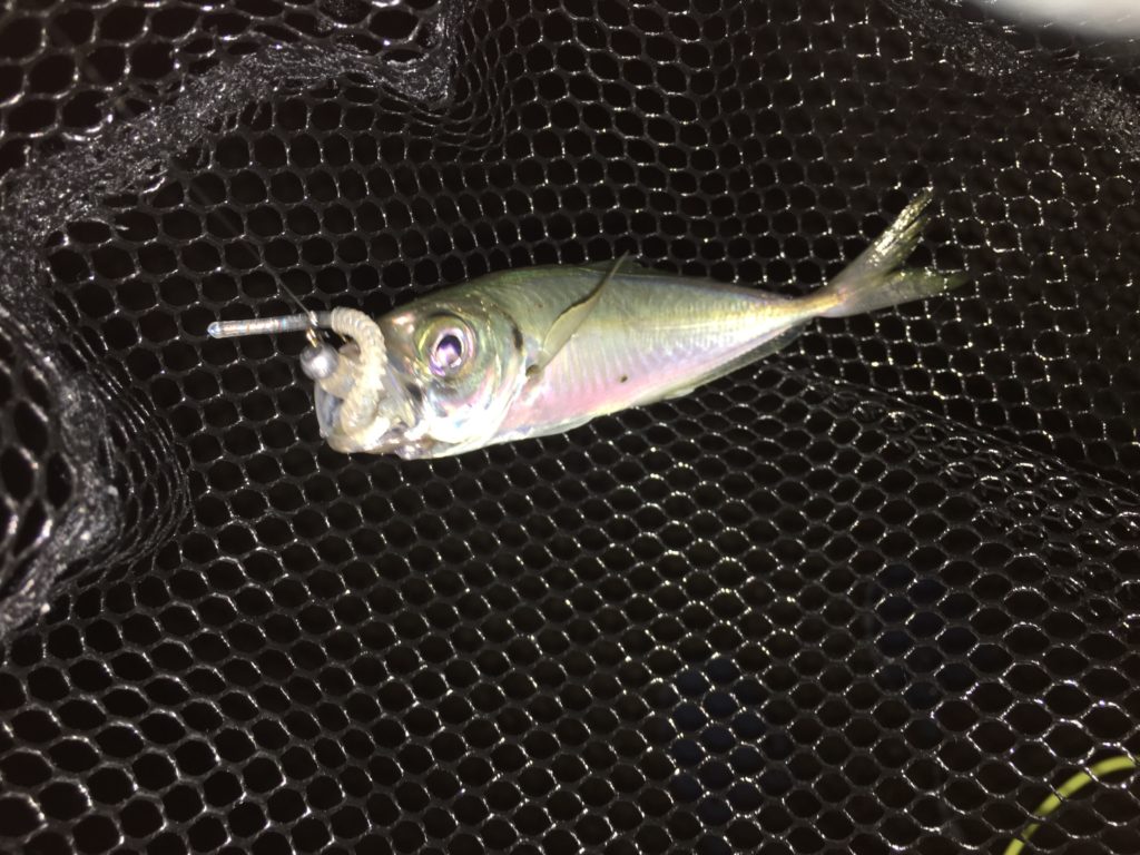 ジグヘッドはアジスタ0.8g、ワームは尺アジリンガーです。