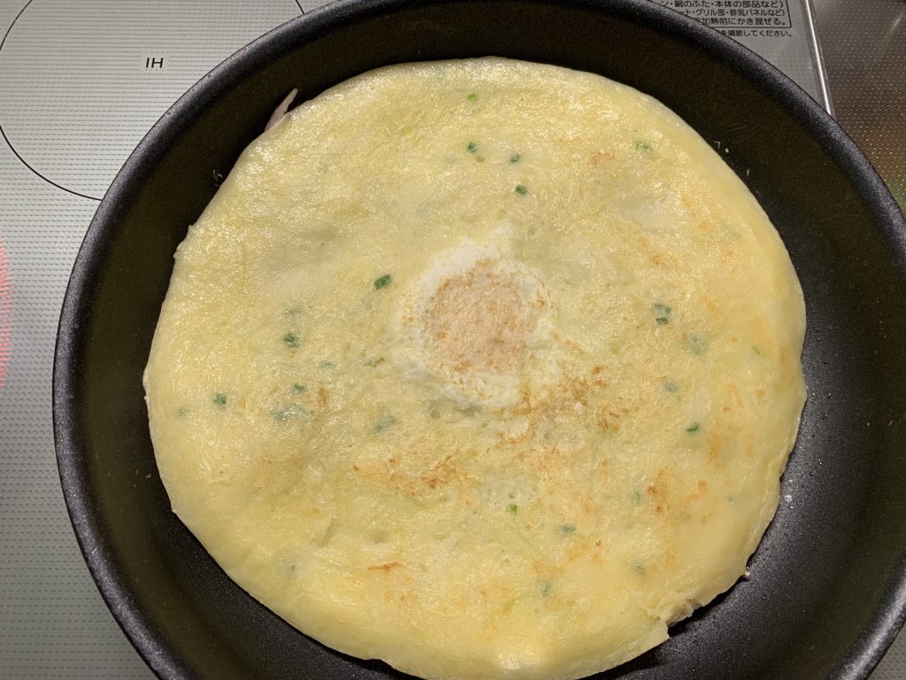 作った生地の半分量を28㎝のフライパンで焼きましたが、薄焼きのようになってしまいました(´ω`*)