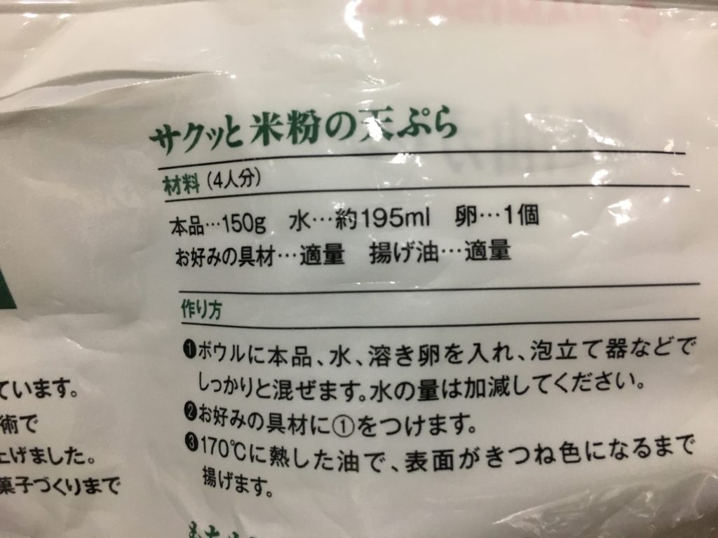 パッケージからも分かる通り、米粉で天ぷらができます。