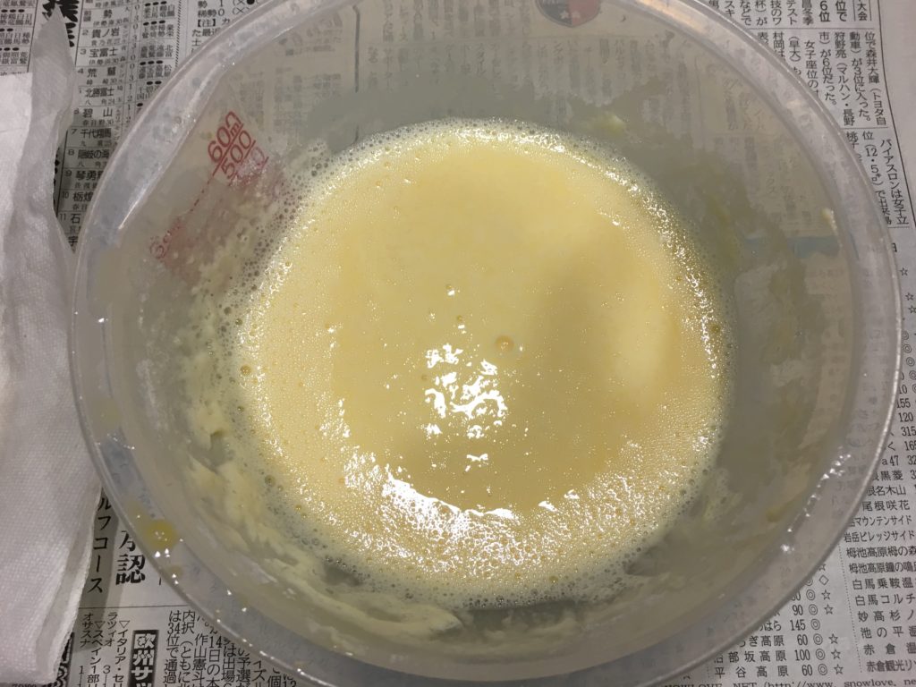 まんべんなく粉が行き渡るように、かき混ぜましょう。