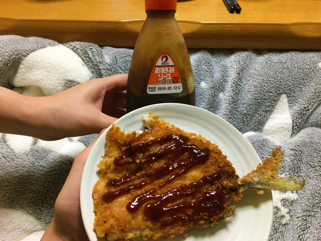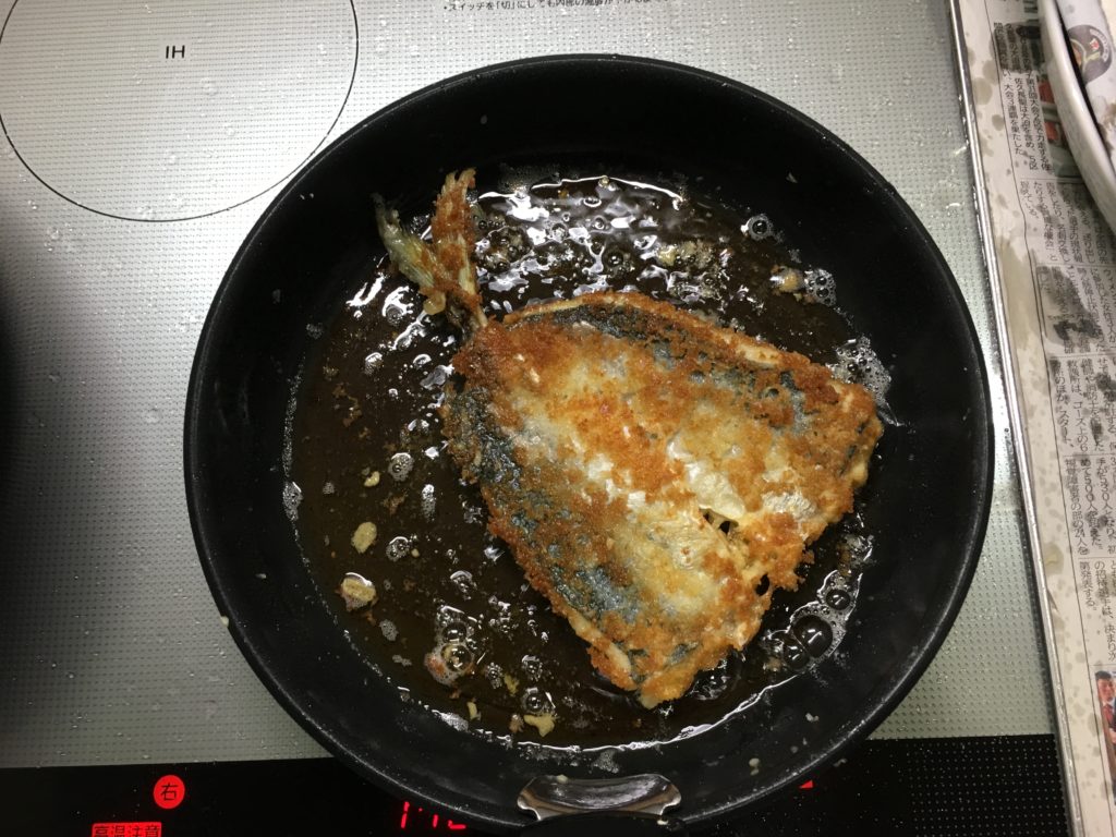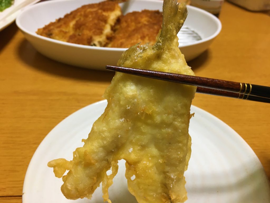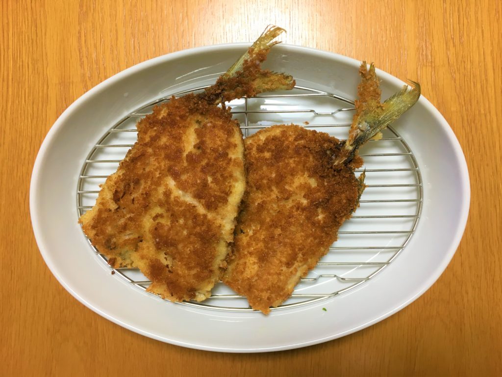 尻尾に負荷がかかって若干不格好ではありますが、立派なアジフライの出来上がりです!