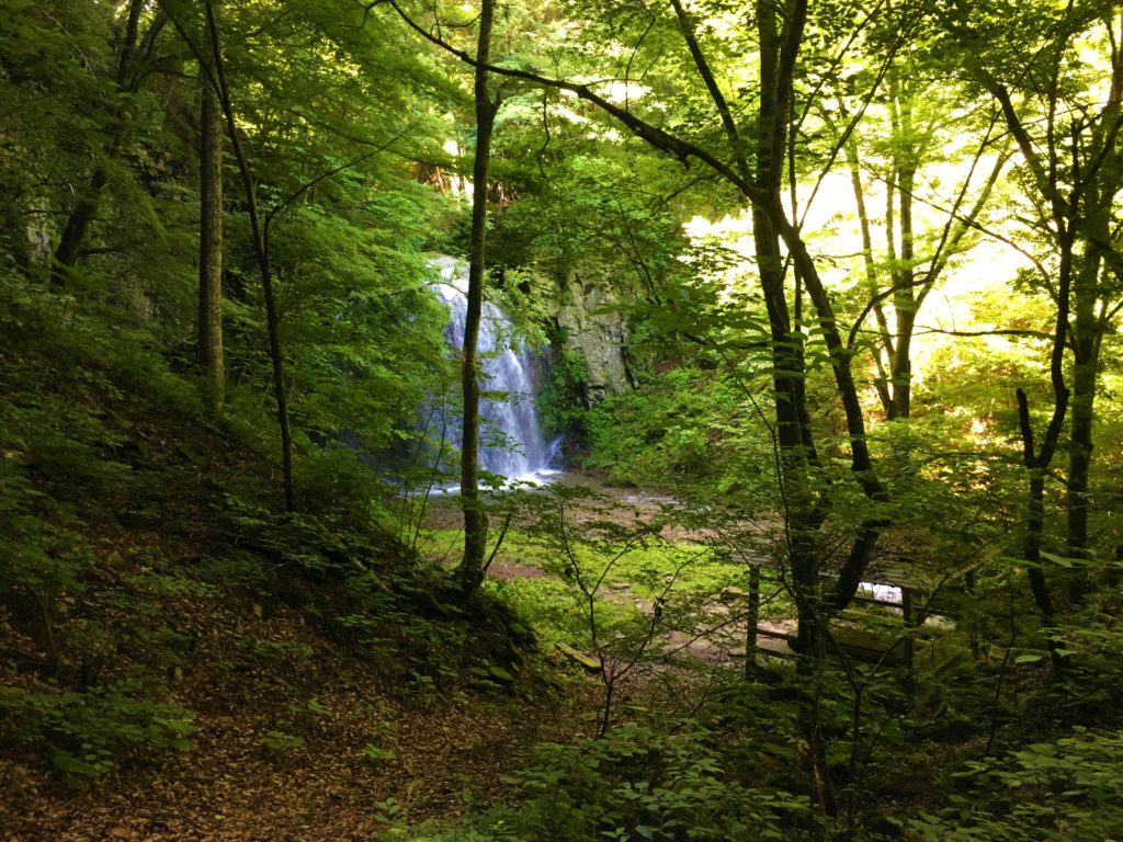 なかなか癖のある道、獣が出る山道の先に雄大な滝がお目見えします。