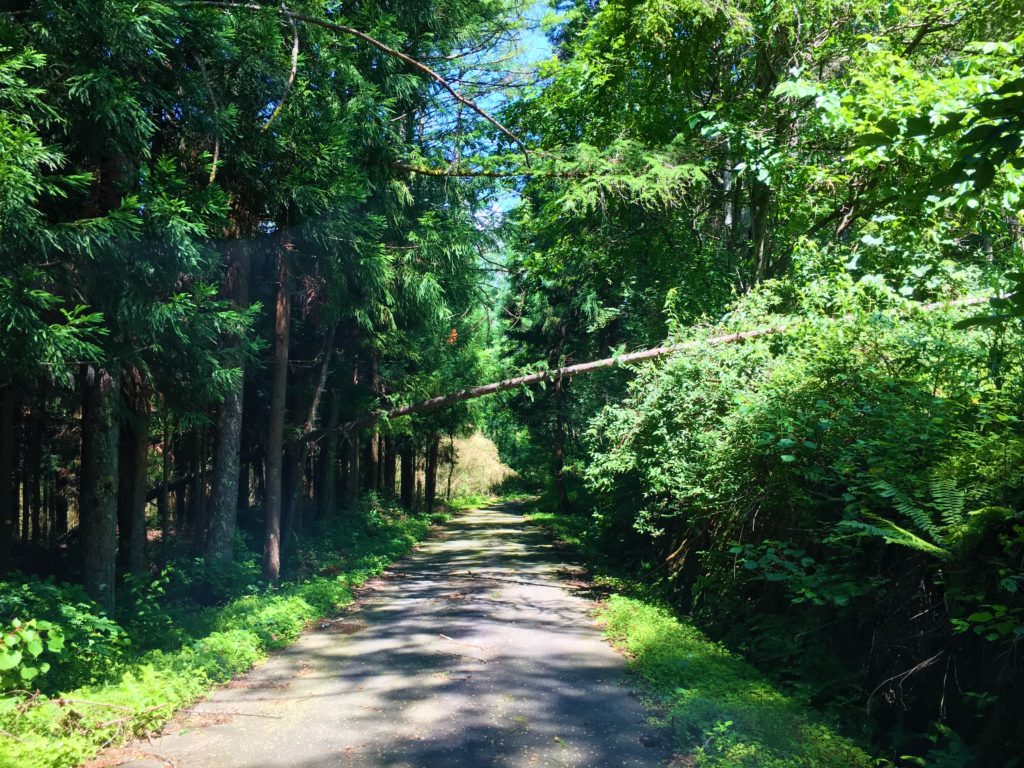 道路自体は舗装されていますが、あまり車通りがないため、ところどころ草が生えています。