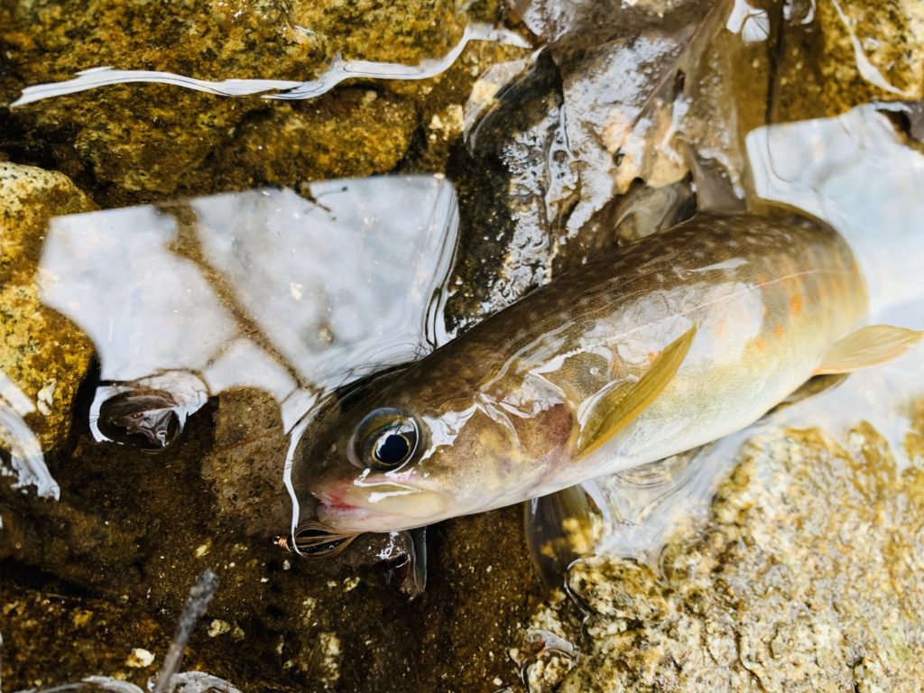思ったよりも白っぽい個体で、冬らしくないイワナです。