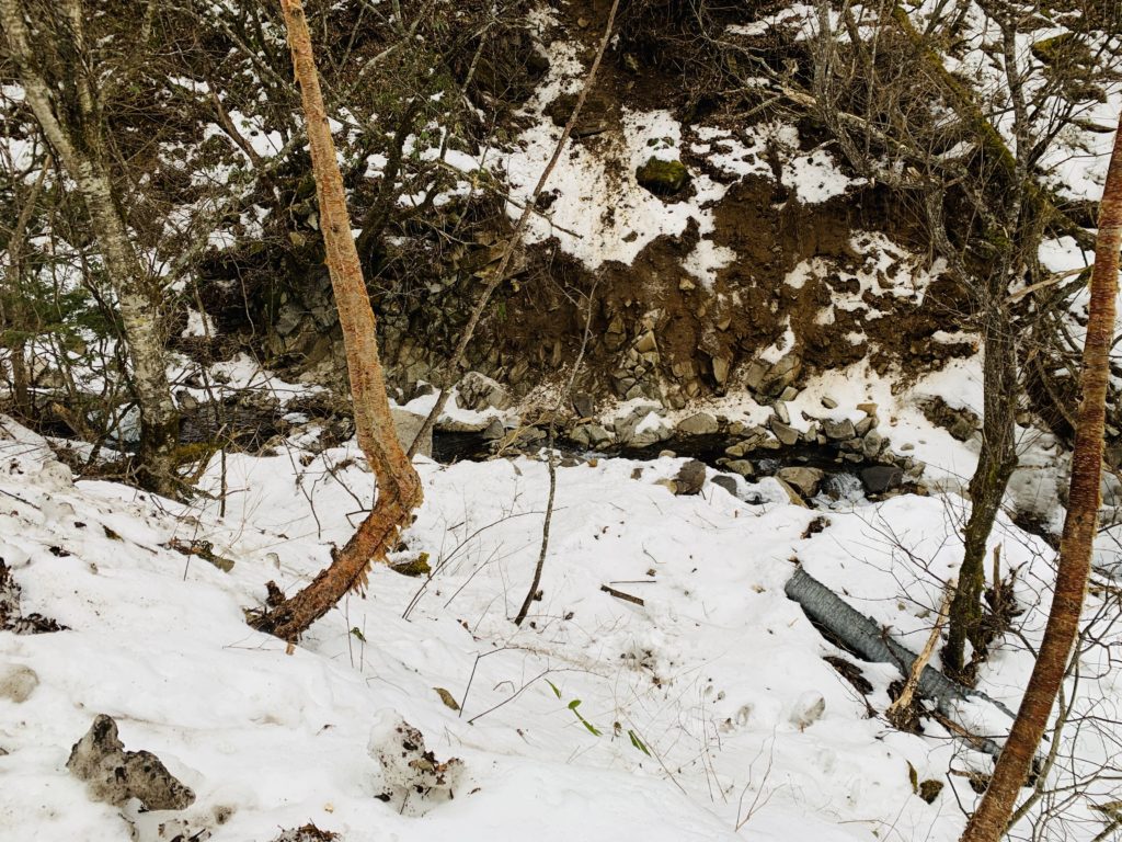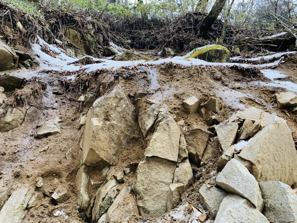まず目についたのは地滑りが起きたであろう箇所です。
