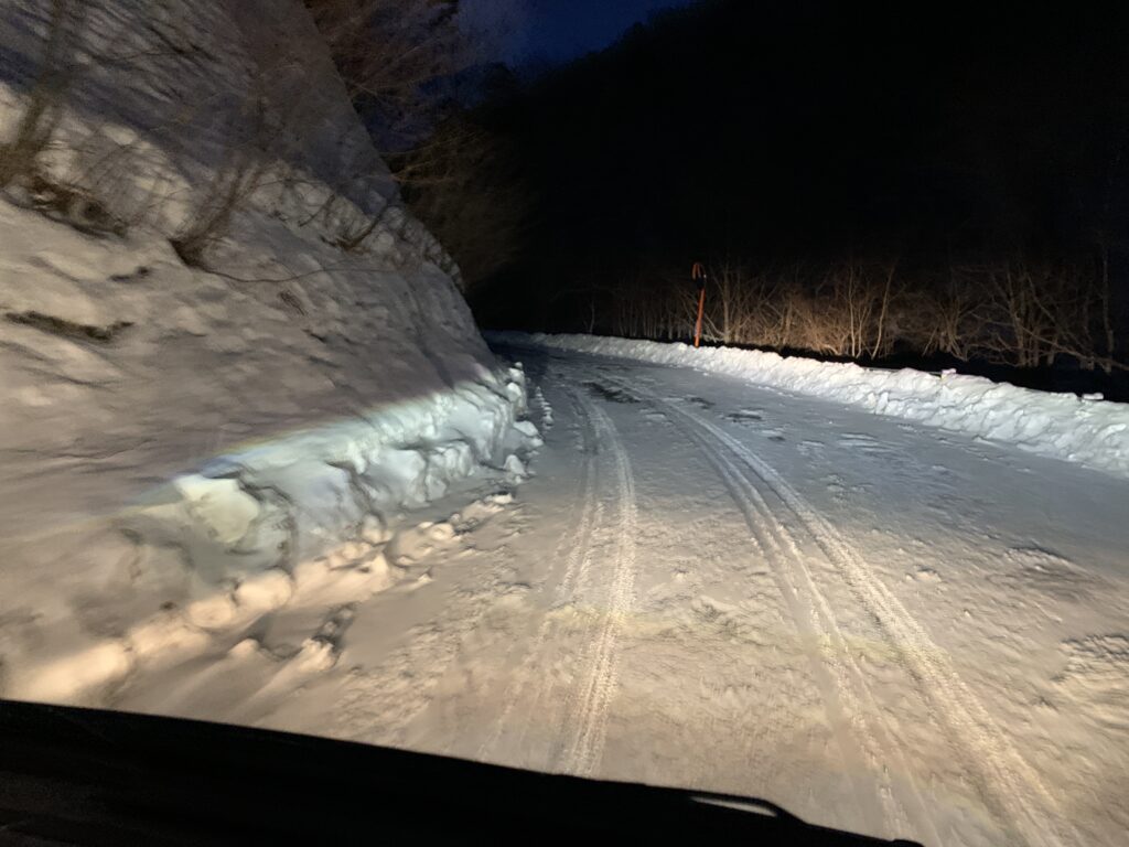 タイヤがスリップする危険な道を暗い時間に走ることになります。