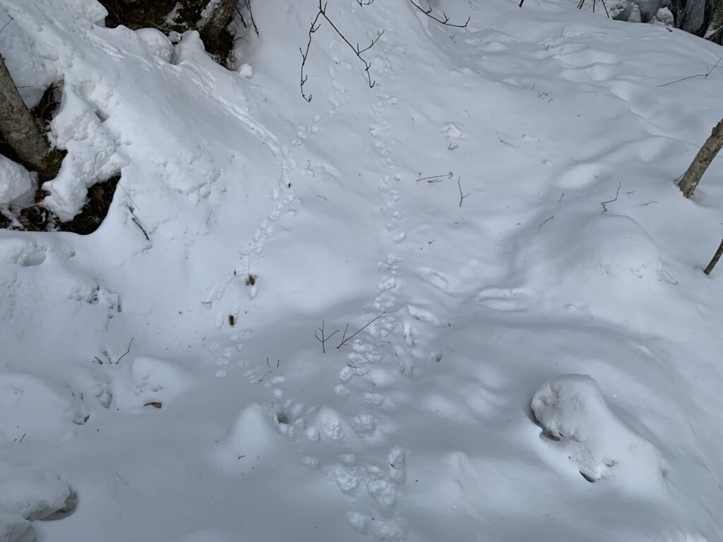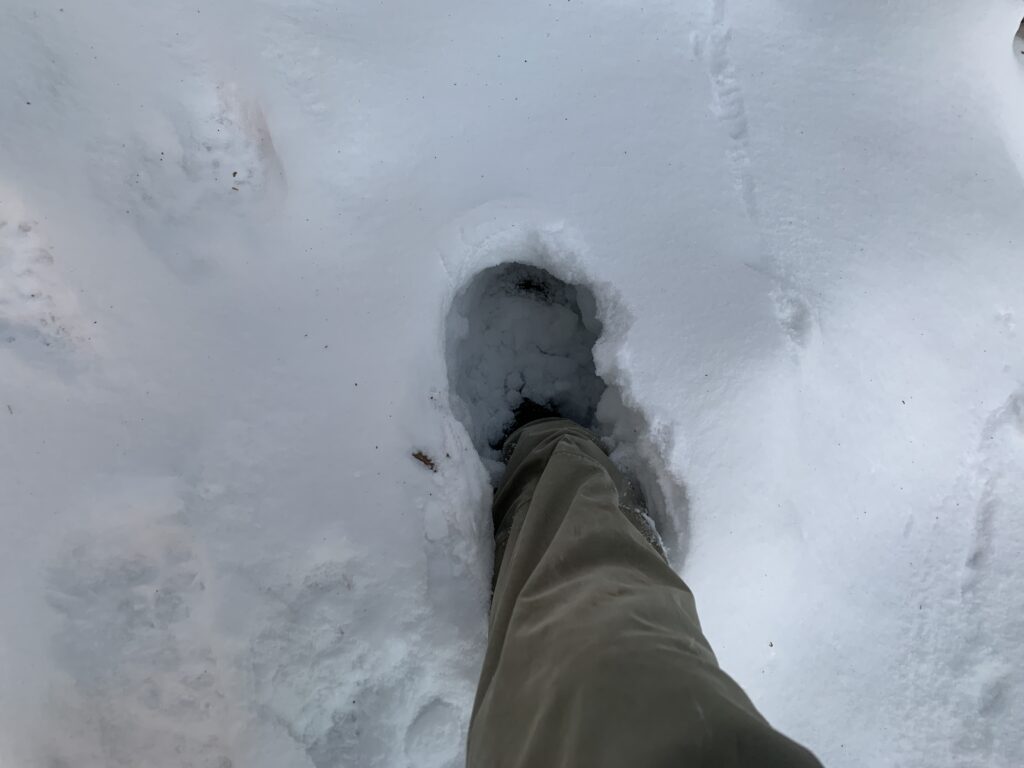 膝上まで埋もれながら道なき道を切り開き、倒木をくぐり、氷を割りながらなんとか次のポイントへ移動。