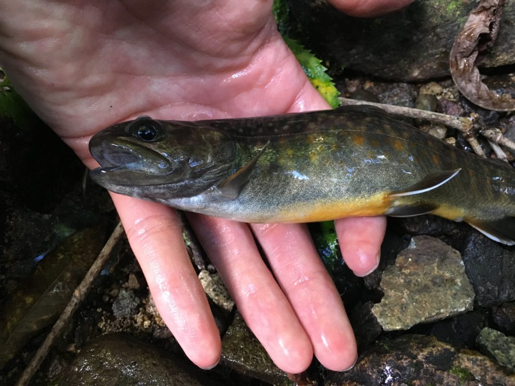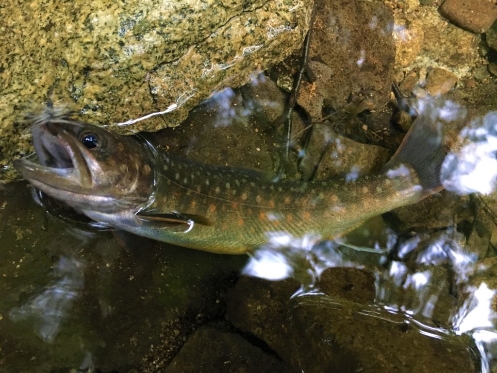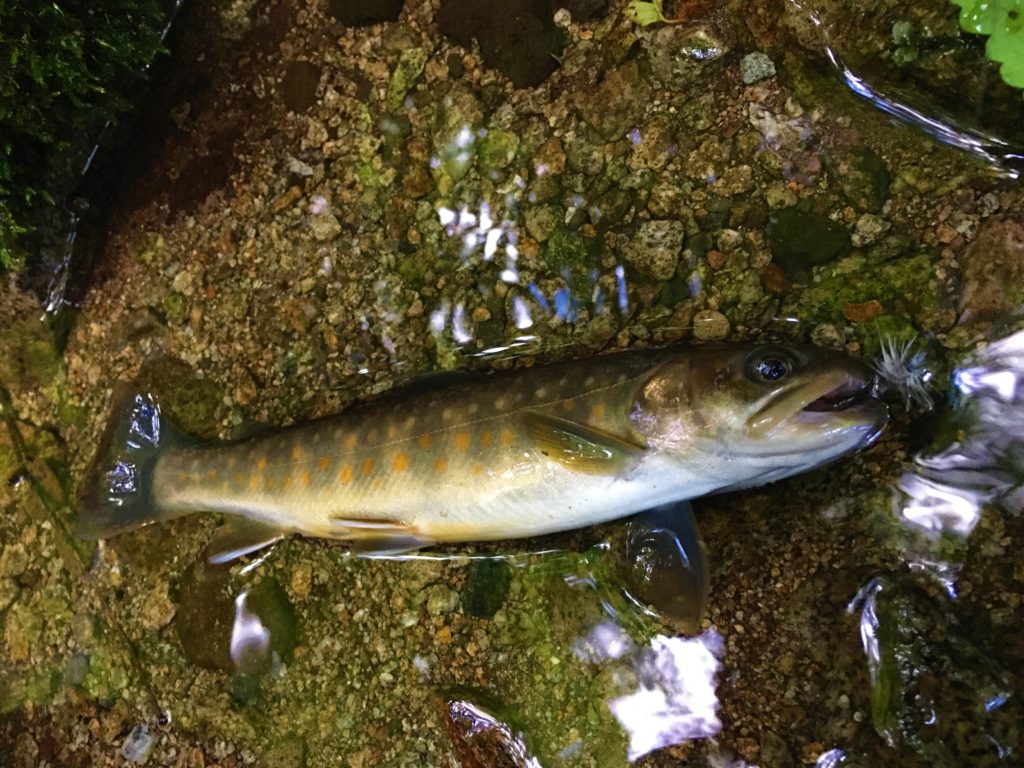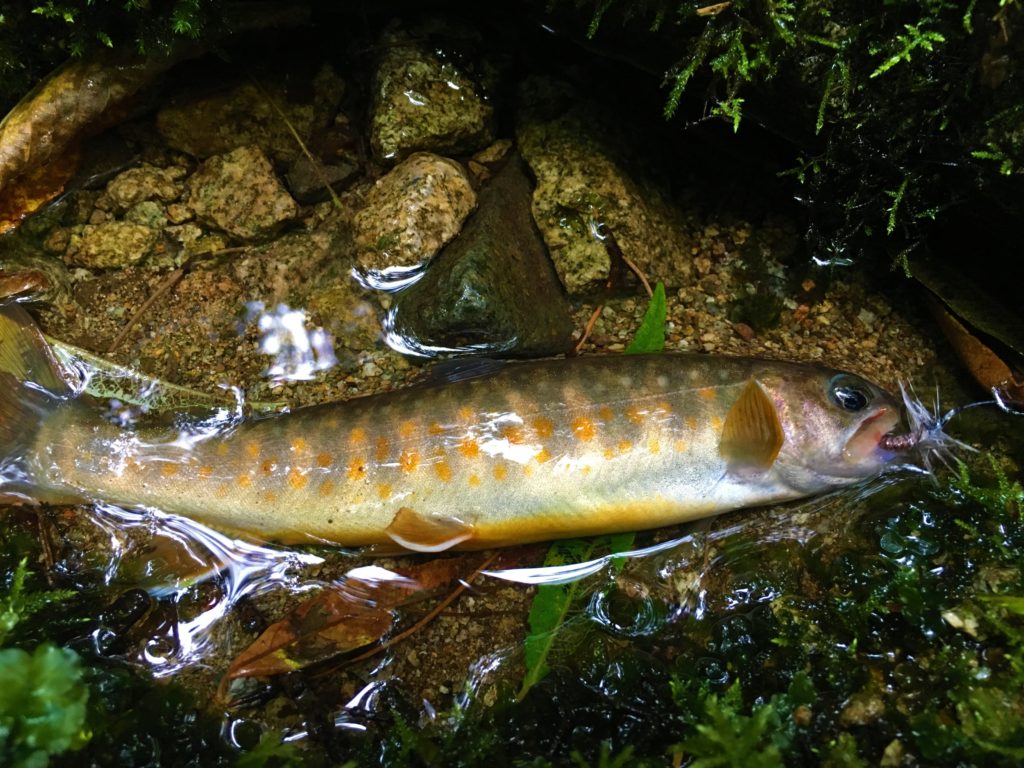 ここのイワナはオレンジの斑点が多い印象で、鮮やかな魚体です。
