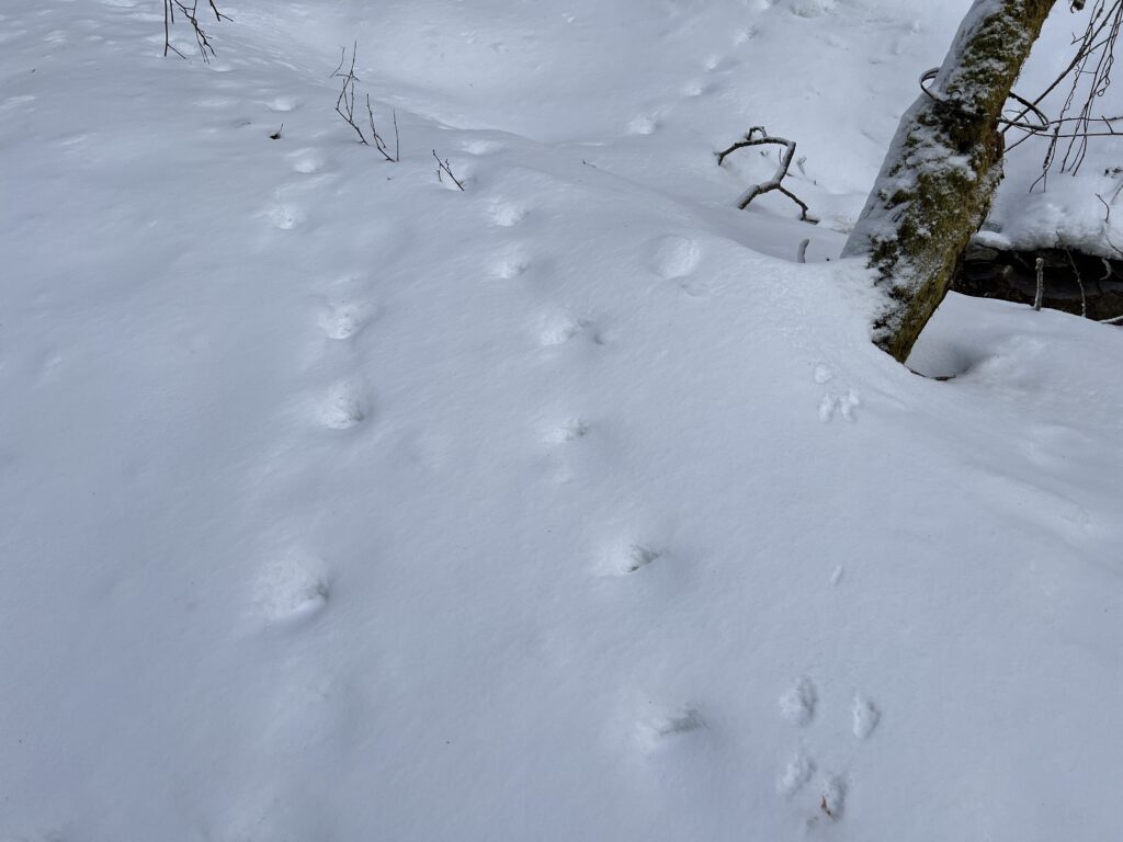 数々の野生動物の可愛らしい足跡に感銘を受けながら、大男の足跡を仲間入りさせます(笑)