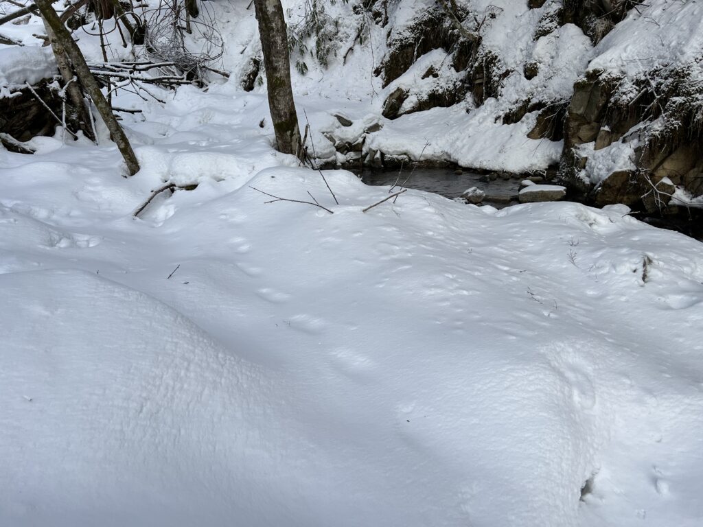 例年と比べたら雪は少なめで川までのエントリーはしやすい状態。