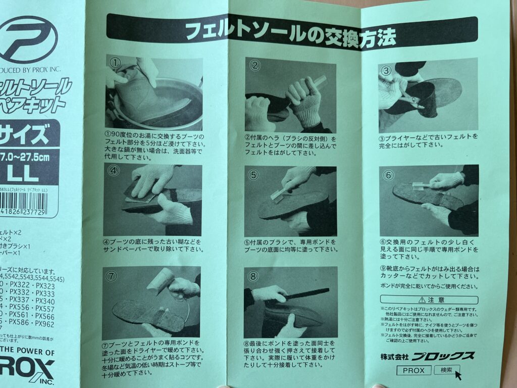 足のサイズが27㎝のウェーダーなので記載の通りLLのフェルトを購入。