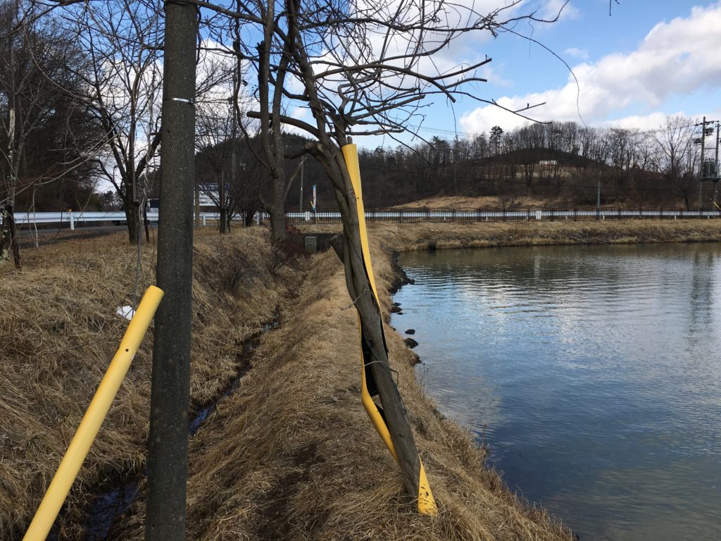 道沿いには桜が植わっており、時期にはお花見も楽しめそうです。