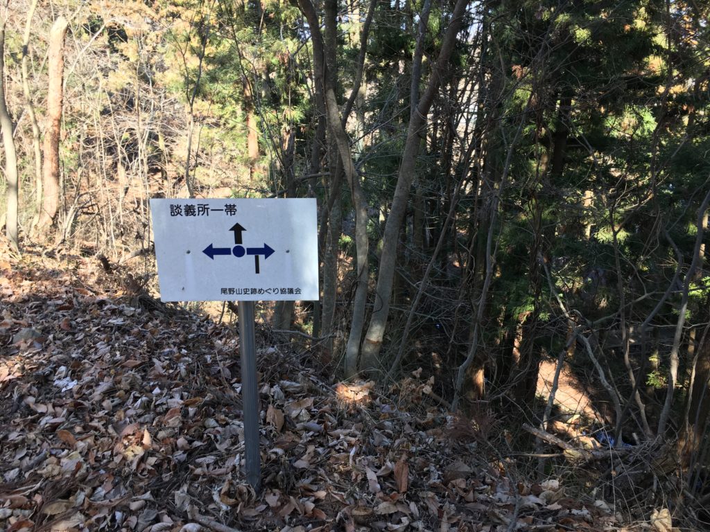 尾野山城跡から西に進むと、頼りの案内板が出てきました。