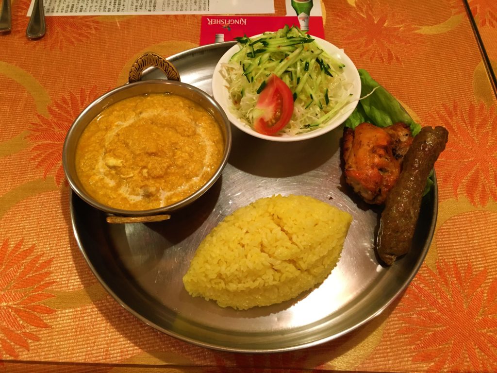 好きなカレーにサラダ、タンドリーチキン(ハーフサイズ)、シークカバブ、ドリンクまで付いて1600円(税込み)です。