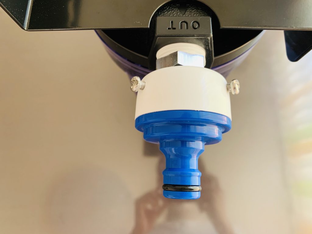 今までは汲み置きしていた水をせっせと運んでいましたが、これを使えば水道から直接カルキ抜きした水を入れることができるのです!