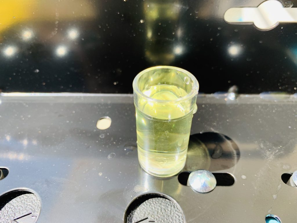水に塩素テスターを入れて、色が黄色くなれば塩素あり、無色なら塩素なしの状態です。