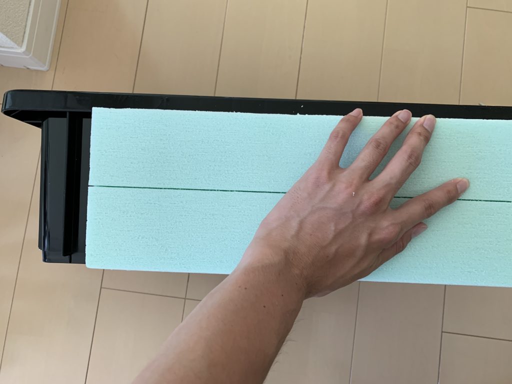 まずは発泡スチロール板をNVボックスの高さに合わせてカットしていきます。