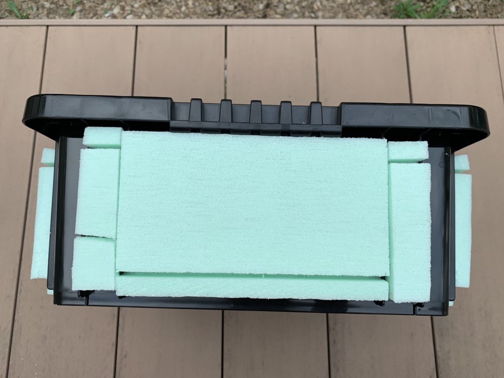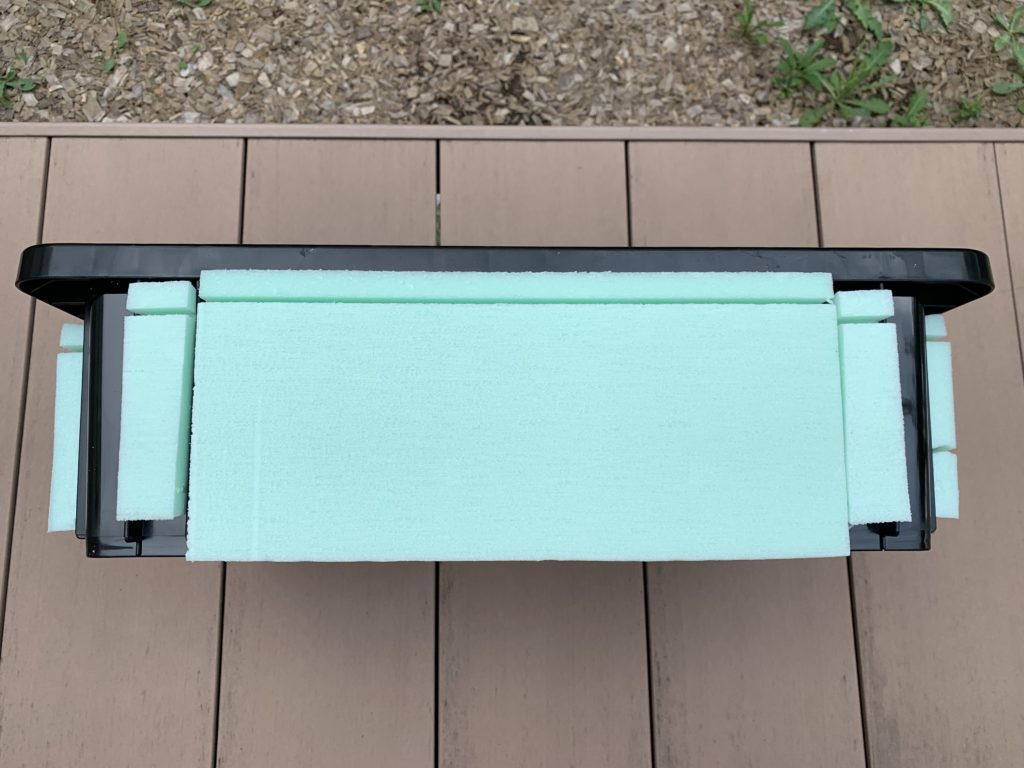 今回僕は発泡スチロールを使ってNVボックスを加工しましたが、人によっては梱包用のプチプチシートを巻くといった方もいるようです。