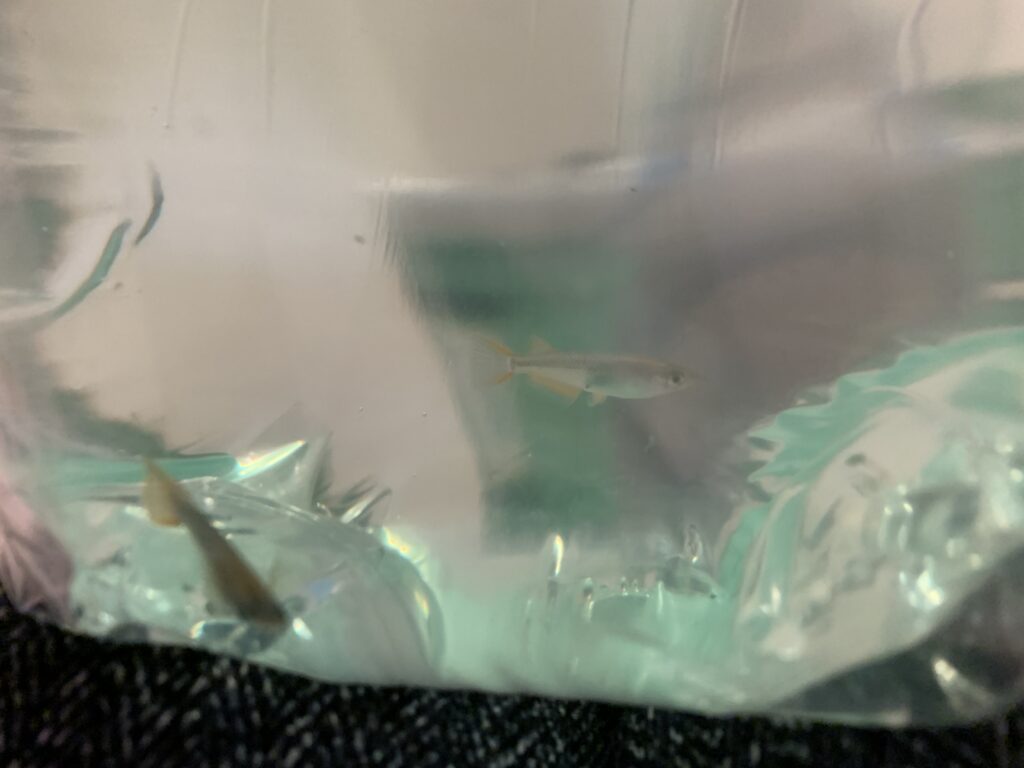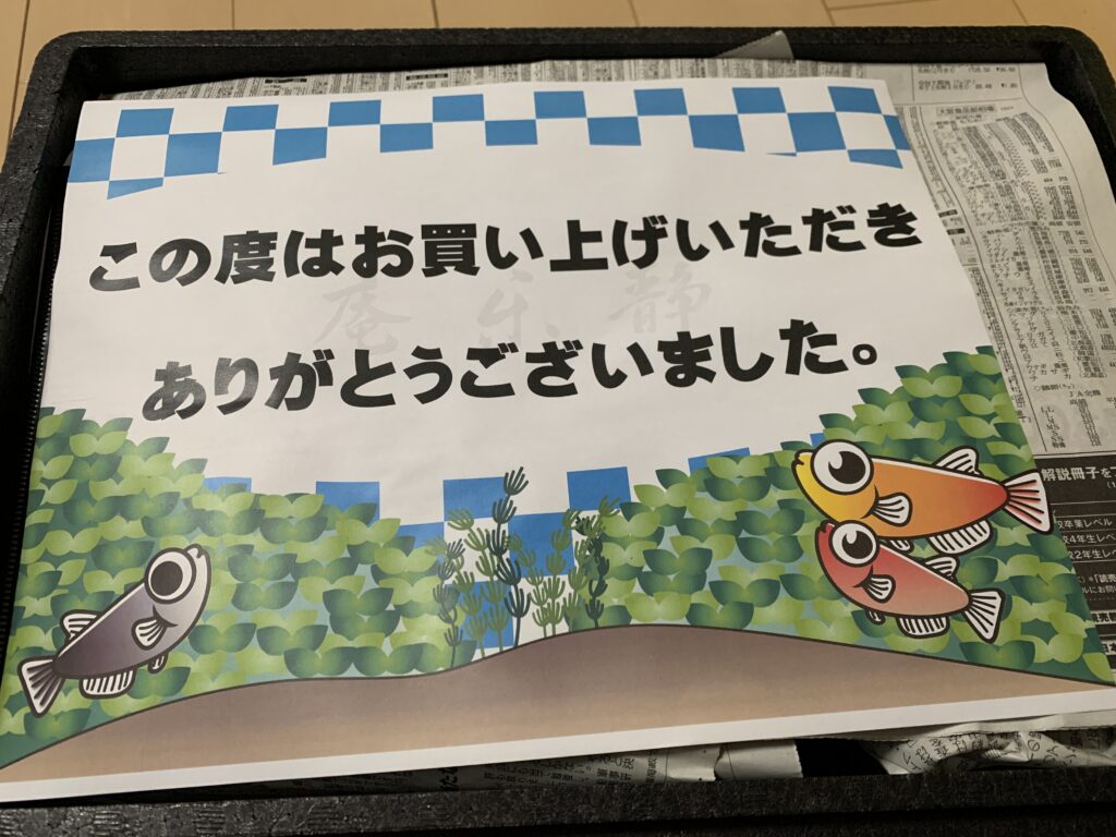袋の上からヒレが赤いことを確認。これぞ令和。