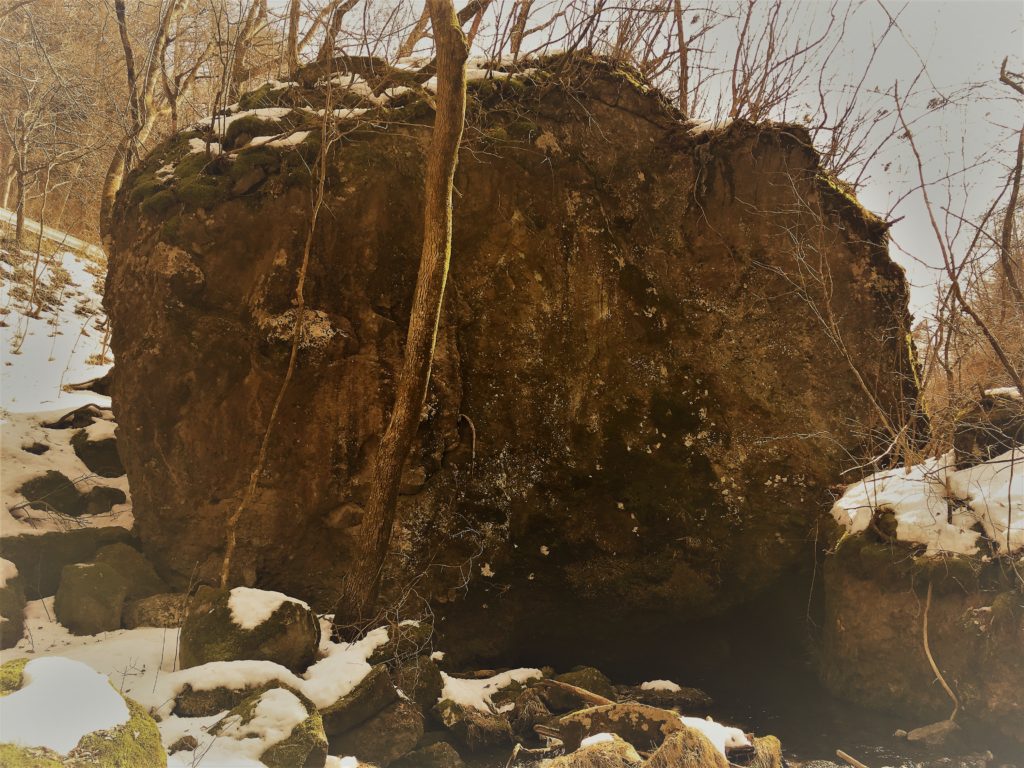 左上に巨大な岩が。家一軒分ぐらいのデカさです。