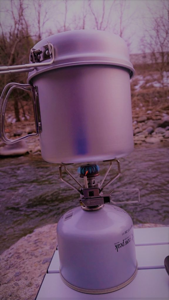 クッカーでお湯を沸かしてココアブレイク。
