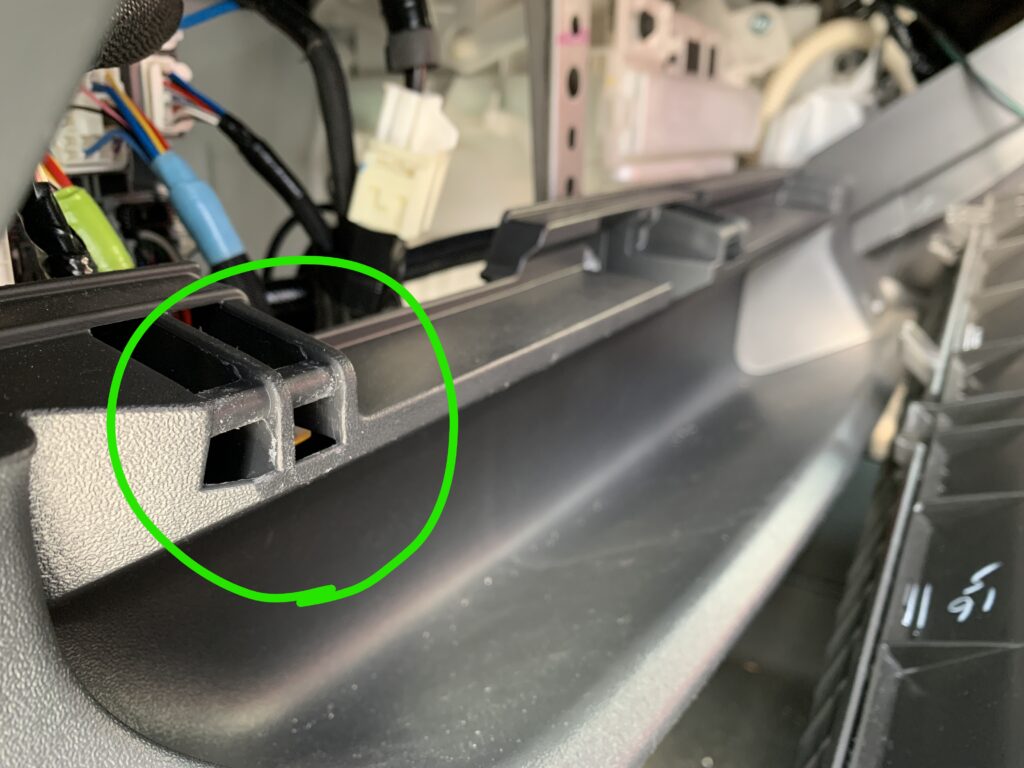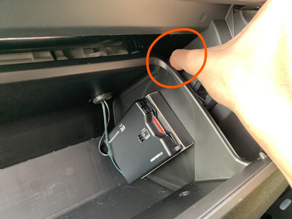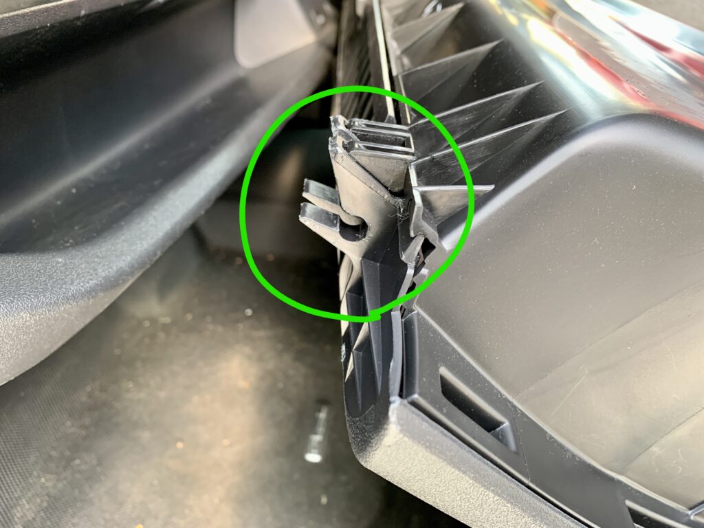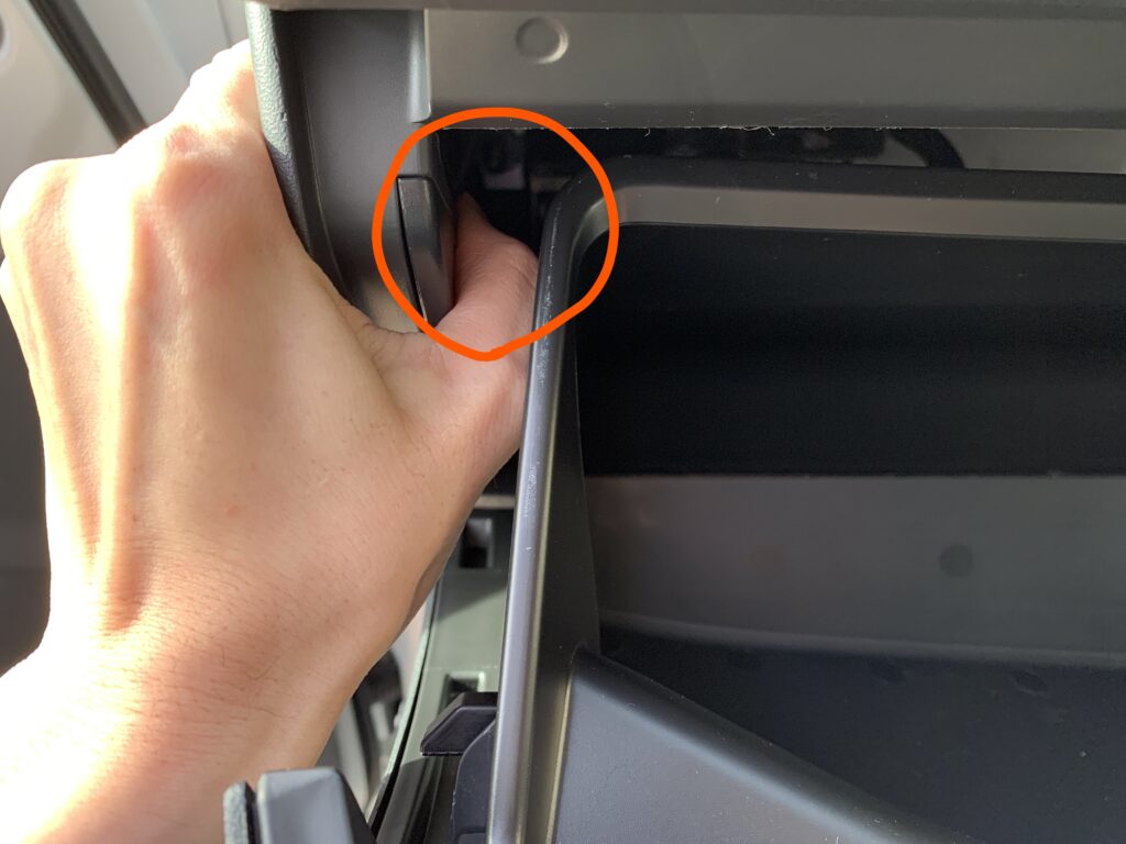 端っこのツメが引っかかっている部分を押しながらグローブボックスを引っ張るのです。