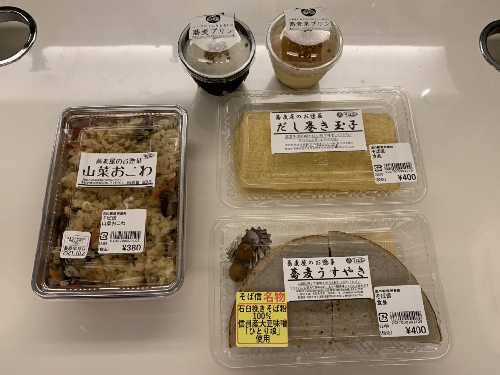 道の駅 信州新町では「蕎麦屋のお惣菜」シリーズを大量購入。
