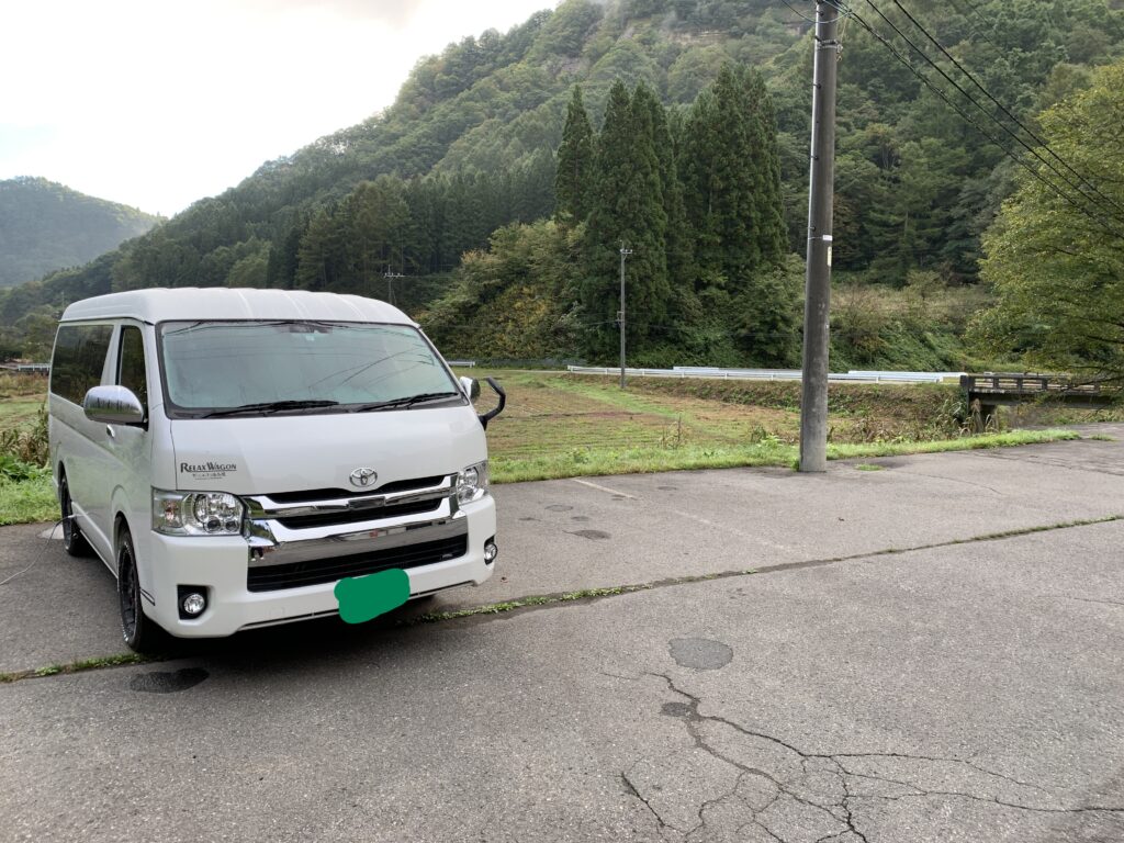 うっすらハイエースのお尻が。あそこで泊まりました。