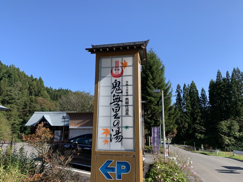 鬼無里の湯は大きな看板があるので、道さえ間違えなければすぐに分かると思います。
