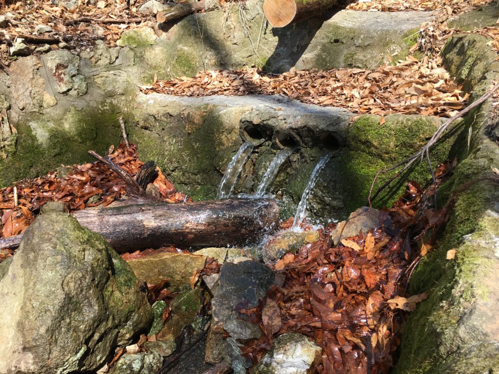 ちょろちょろと水が出ています。下に行くほどそれなりに水量がありました。前日に雪や雨が降ったからかもしれません。