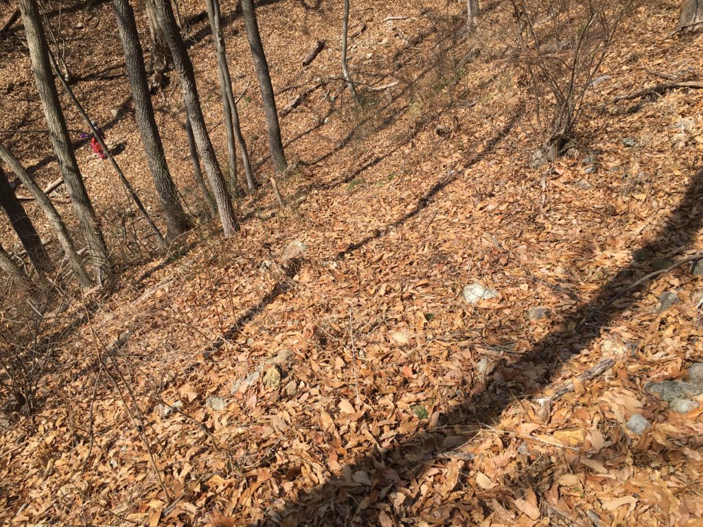 ここから先は落ち葉だらけ。人が踏みしめたような跡は見えません。