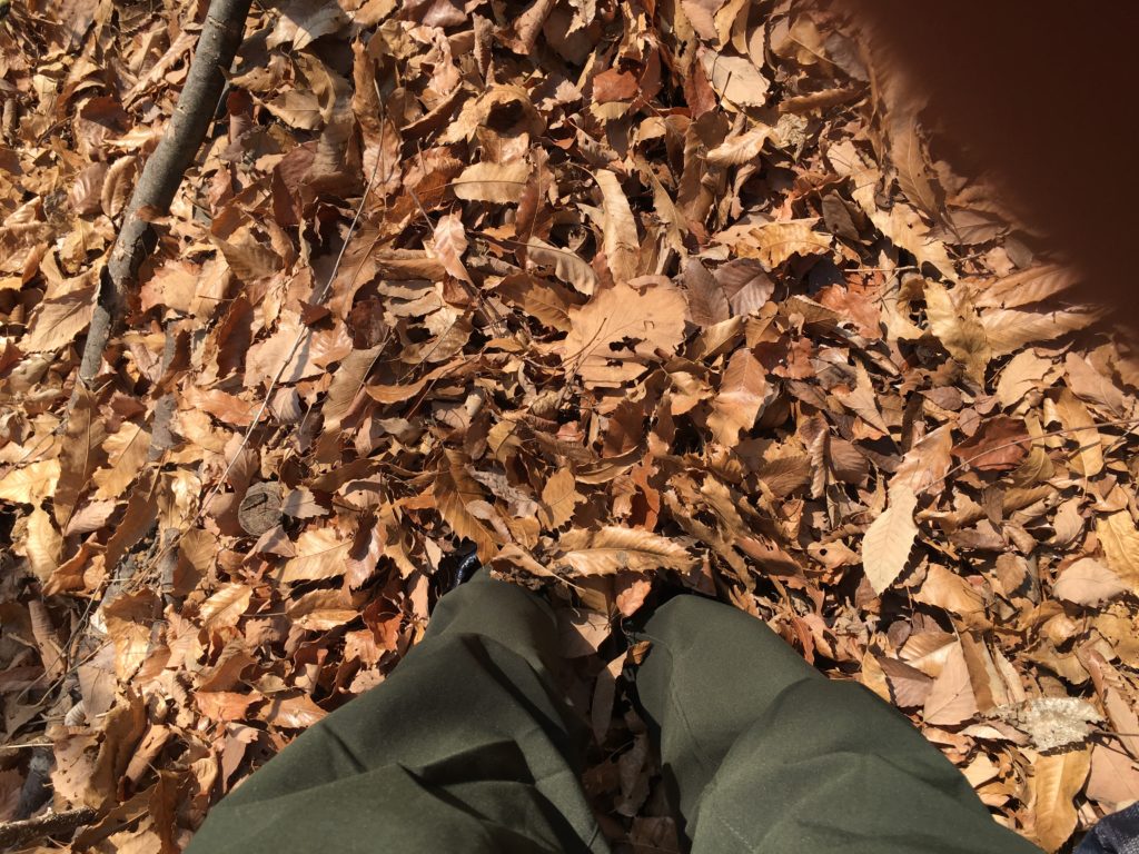 知らなければ不安ですが、話しを聞いているので自信をもって進みます。こうなれば落ち葉は絶好のクッションで、気持ちいい感触を踏みしめながら歩いていきます。