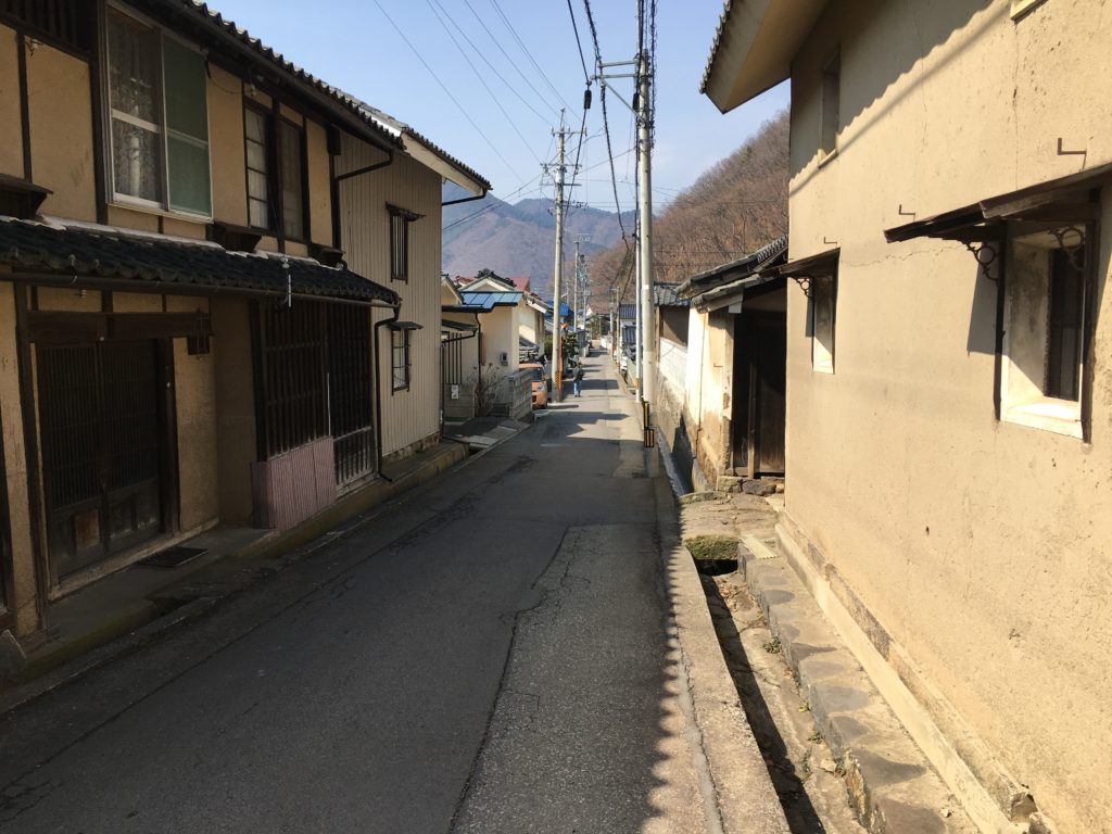 ここがメインの北国街道。メインと言っても車でのすれ違いはできないほどの狭さ。