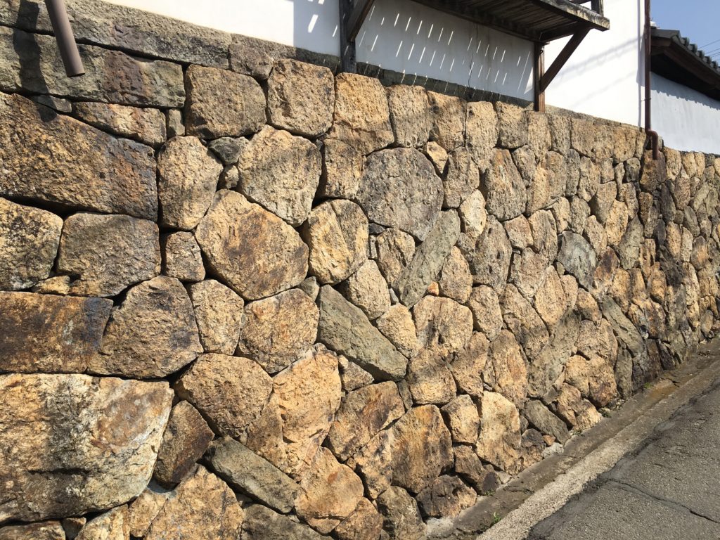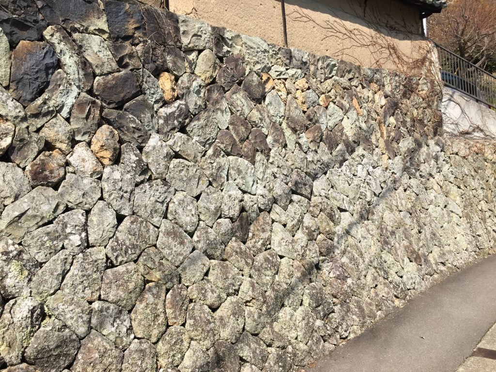 そこで目に付くのは石垣。石垣を組んで平たんにすることで立派な家ができているようです。